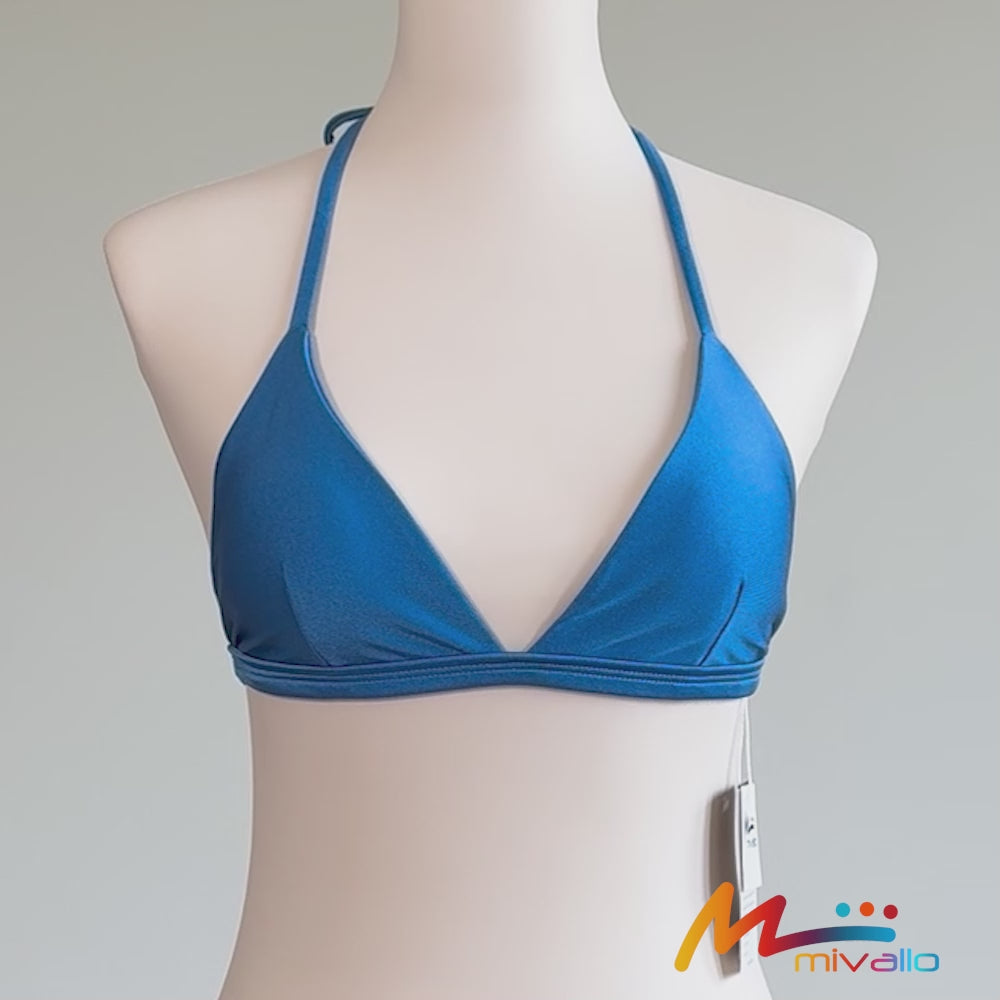 This classic halter bikini top with a clasp back is ideal for the woman who loves a sleek, timeless style, offering a perfect balance of comfort and elegance for any sunny adventure.